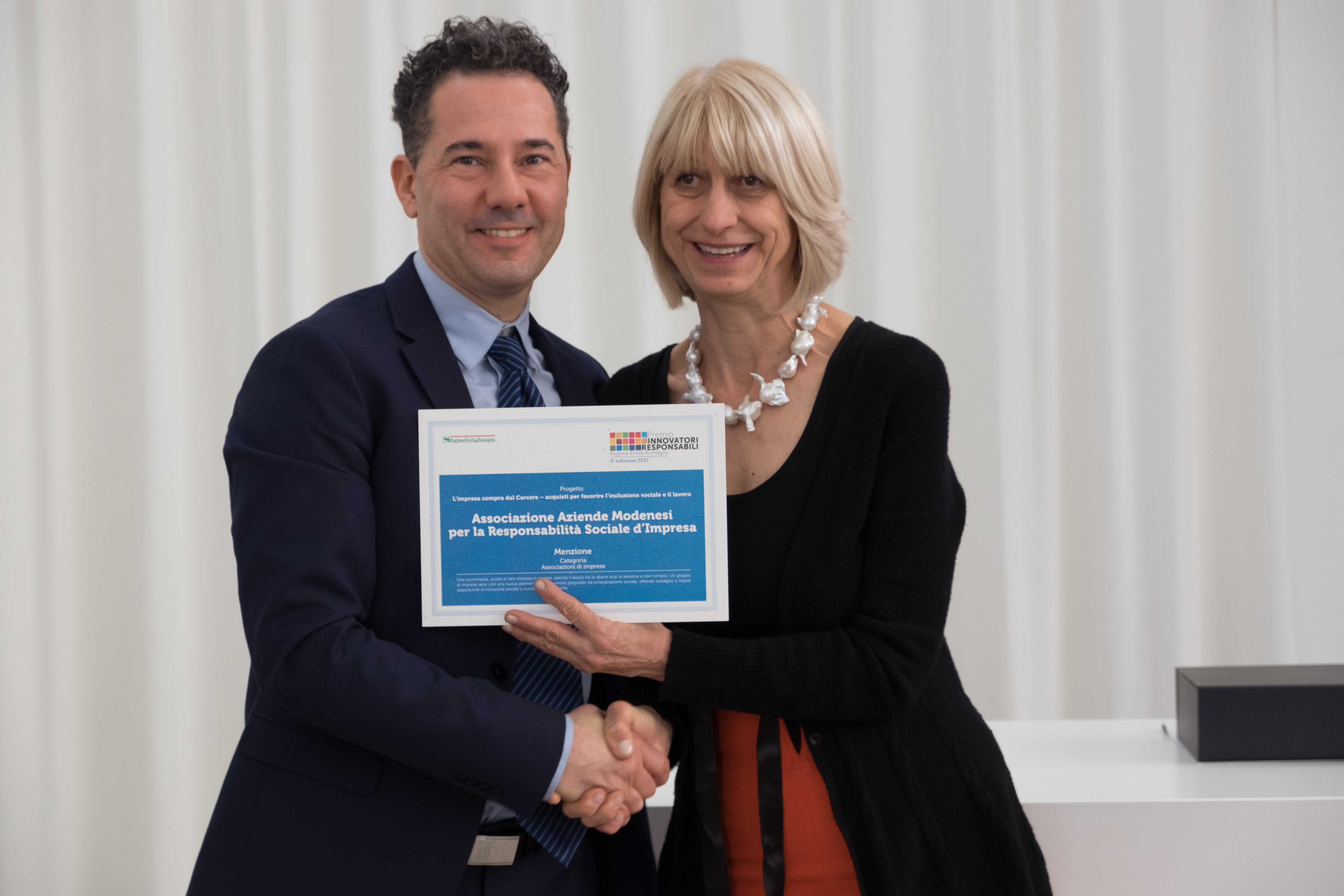 Premio Er.Rsi edizione 2017 Fiorano Modenese, 6 dicembre 2017 https://imprese.regione.emilia-romagna.it/rsi/fotogallery/er-rsi-2017 https://imprese.regione.emilia-romagna.it/@@site-logo/2025-RER-IDENTITA-VISIVA_logo_mobile.png Premio Er.Rsi edizione 2017 Fiorano Modenese, 6 dicembre 2017 Yoox Net a Porter Group - Prima classificata imprese con più di 250 dipendenti Stafer - Prima classificata imprese con meno di 250 dipendenti Work and Service - Prima classificata Cooperative sociali Confesercenti e Piacecibosano - Prima classificata associazioni di impresa Local to you - Prima classificata start up Consorzio Rimini Mare - Prima classificata imprese con meno di 20 dipendenti Coopselios - Menzione speciale Assemblea legislativa Cooperativa sociale Tice - Menzione cooperative sociali Coop Reno - Terza calssificata imprese con più di 250 dipendenti Coop Alleanza 3.0 - Menzione imprese con più di 250 dipendenti Consorzio Integra - Terza classificata imprese con meno di 250 dipendenti Col.Ser Servizi - Menzione speciale Assemblea legislativa Cna Emilia Romagna - Menzione associazioni di imprese CM Sistemi informatici - Menzione speciale Assemblea legislativa Casa Gioia - Menzione start up Camelot Officine cooperative - Menzione cooperative sociali Aziende modenesi per la Rsi - Menzione associazioni di imprese Andrea Pontremoli - AD Dallara Automobili, Presidente Associazione Muner Allevamenti F.lli Morini - Menzione start up By-EntO - Seconda classificata start up Precedenti 20 elementi 1 2 3 Successivi 5 elementi